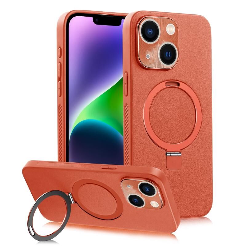 Θήκη τηλεφώνου για iPhone 14 Plus με περιστρεφόμενη βάση MagSafe, PC + Δέρμα (Πορτοκαλί)