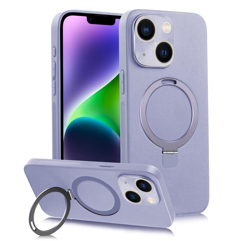 Θήκη τηλεφώνου για iPhone 14 Plus με περιστρεφόμενη βάση MagSafe, PC + Δέρμα (Πορτοκαλί)