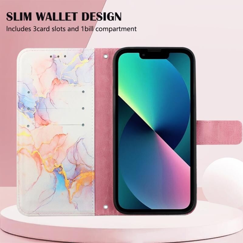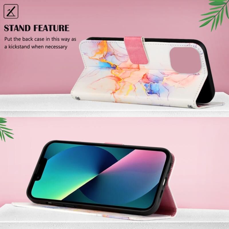 Θήκη τηλεφώνου από δέρμα με σχέδιο μάρμαρου για iPhone 14 Plus, τύπου flip, μέγιστης κυκλοφορίας (Χρυσό Ρόδι LS005)