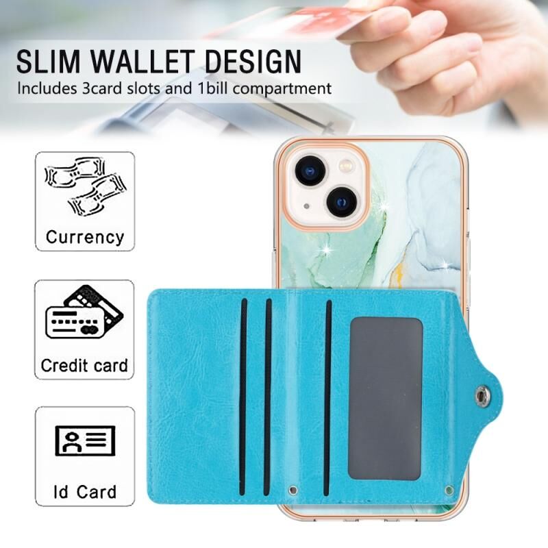 Θήκη τηλεφώνου με σχέδιο μάρμαρου IMD και θήκη καρτών για iPhone 14 Plus (Λευκό Γαλαξιακό Μάρμαρο)