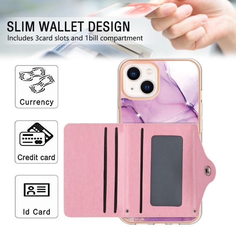 Θήκη τηλεφώνου με σχέδιο μάρμαρου IMD και θήκη καρτών για iPhone 14 Plus (Λευκό Γαλαξιακό Μάρμαρο)
