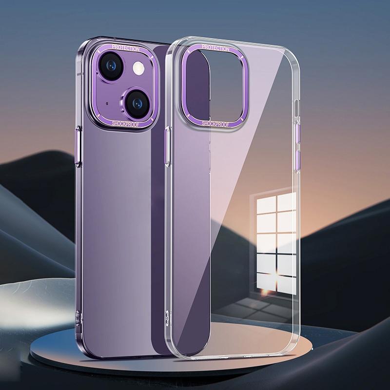 For iPhone 14 Plus Metal Lens Ring Clear PC Phone Case(Deep Purple)