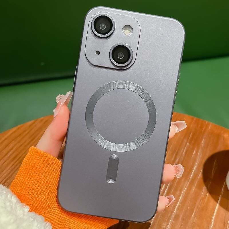 Θήκη κινητού για iPhone 14 Plus με μεταλλικό χρώμα, MagSafe και υγρό TPU (Μωβ)