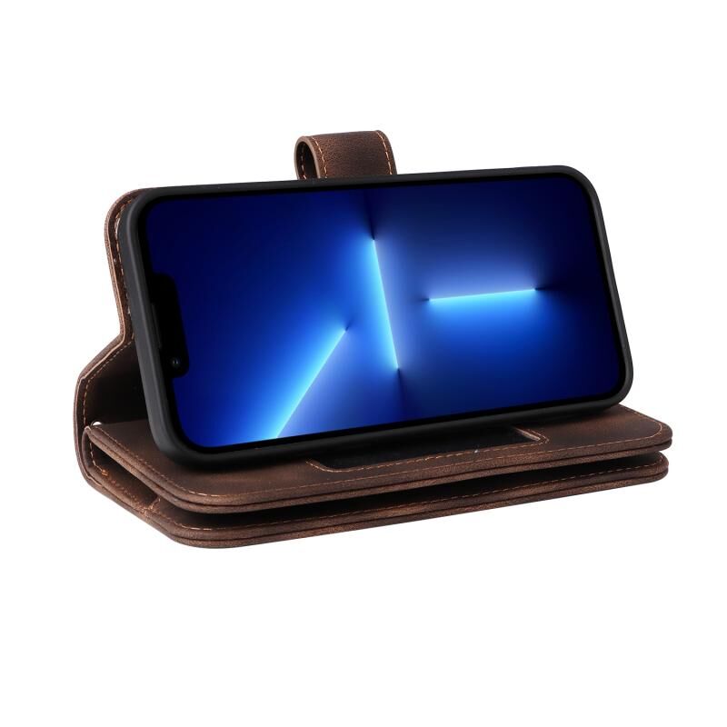 Θήκη τηλεφώνου από δέρμα τύπου flip με πολλαπλές υποδοχές καρτών και φερμουάρ για iPhone 14 Plus (Μαύρο)