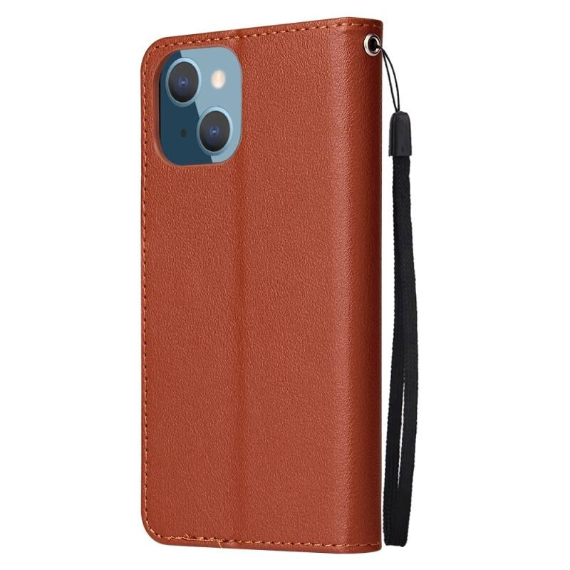 Θήκη δέρματος οριζόντιας αναδίπλωσης πολλαπλών λειτουργιών για iPhone 14 Plus με τρεις υποδοχές καρτών (Καφέ)