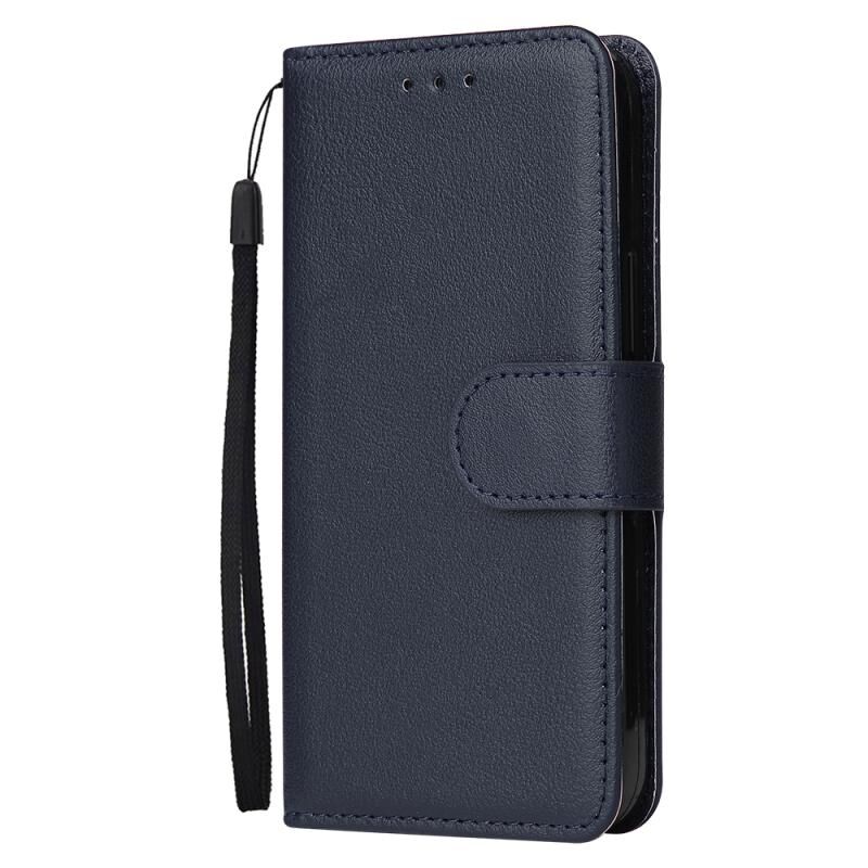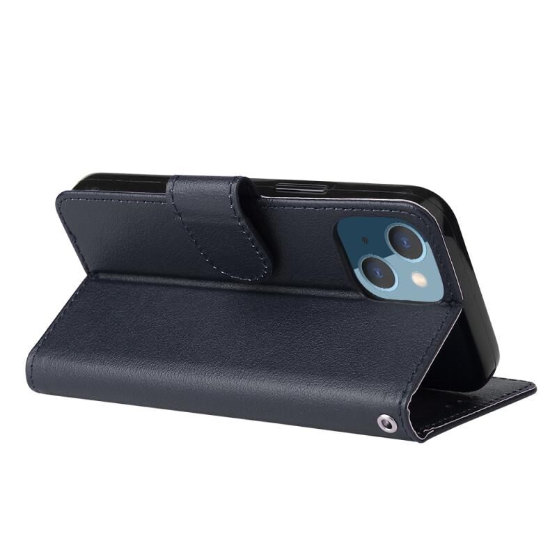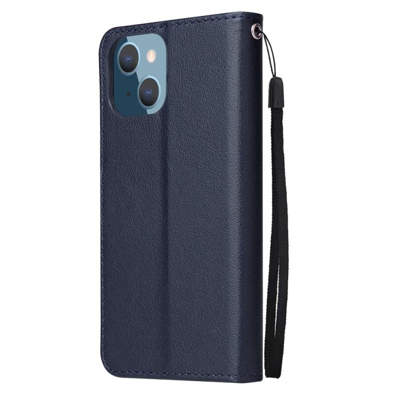 Θήκη δέρματος οριζόντιας αναδίπλωσης πολλαπλών λειτουργιών για iPhone 14 Plus με τρεις υποδοχές καρτών (Navy)