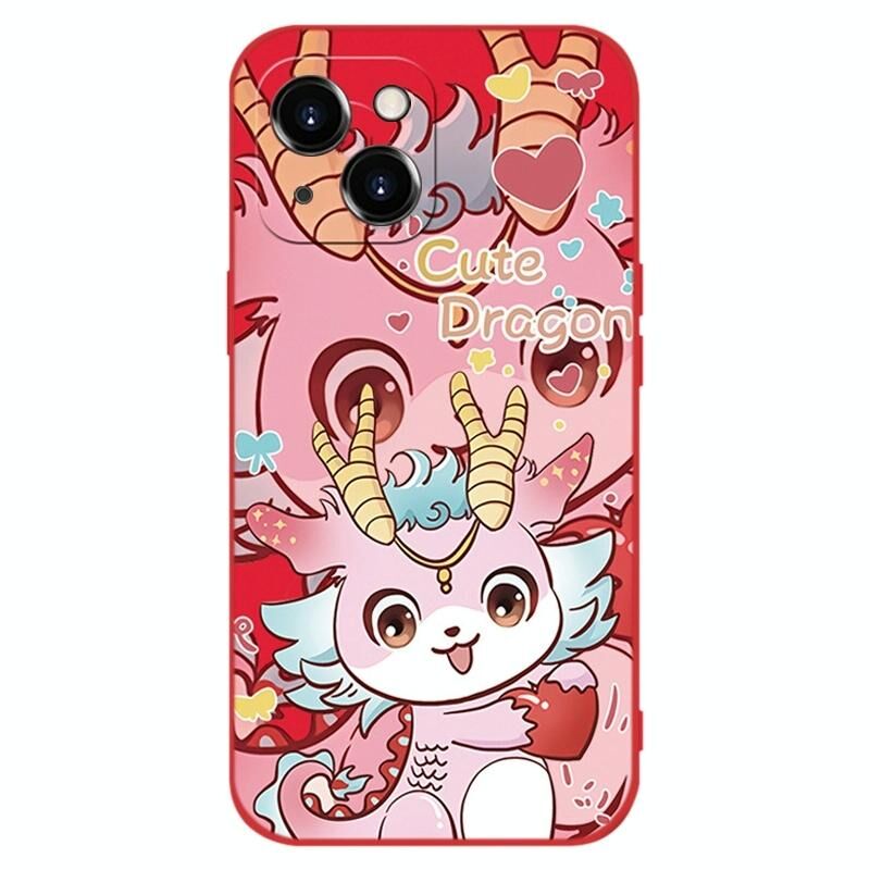 Θήκη τηλεφώνου σιλικόνης αντικραδασμική για iPhone 14 Plus, Κόκκινη για την Πρωτοχρονιά (Χαριτωμένος Ροζ Δράκος)