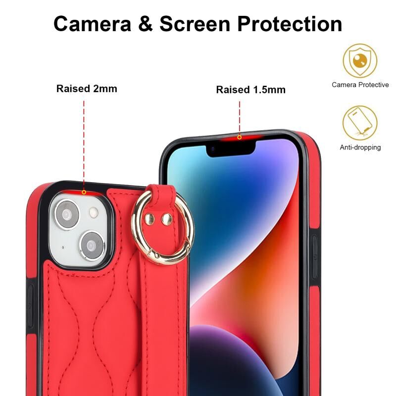 Θήκη τηλεφώνου για iPhone 14 Plus, αντιολισθητική, πλήρης κάλυψη, με δακτύλιο και λουρί καρπού (Μαύρο)