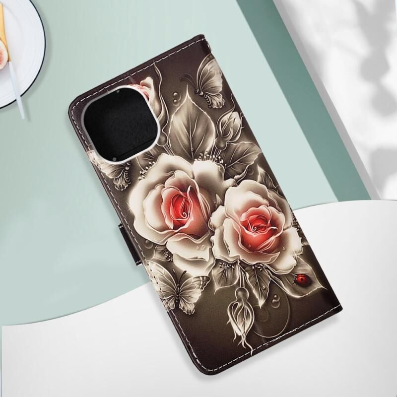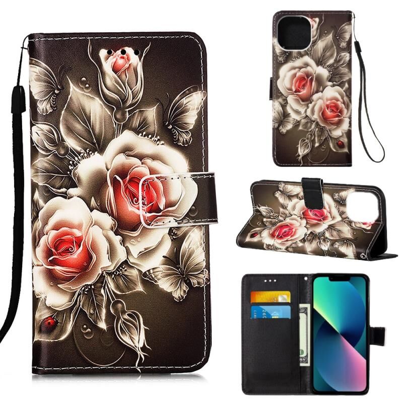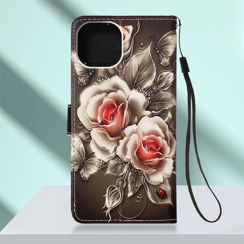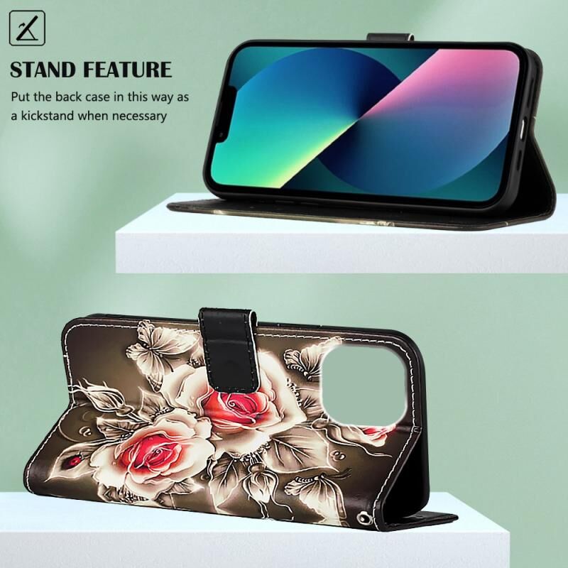 Θήκη για iPhone 14 Plus από Δέρμα με Επίπεδη Υφή και Σχέδιο (Μαύρος Λευκός Τίγρης) με Λουρί, Θήκη Κάρτας και Πορτοφόλι.