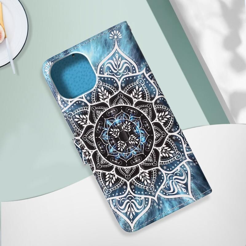 Θήκη για iPhone 14 Plus με σχέδιο Mandala Υποβρύχιου Κόσμου, από δέρμα με επίπεδη υφή και λουρί, με θήκη για κάρτες και πορτοφόλι.