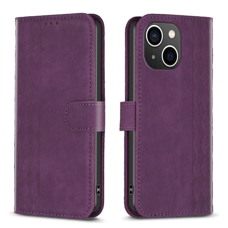 Θήκη τηλεφώνου από ανάγλυφο δέρμα καρό για iPhone 14 Plus (Μαύρο)