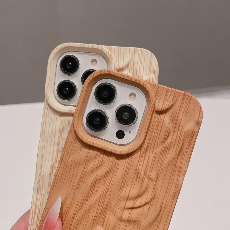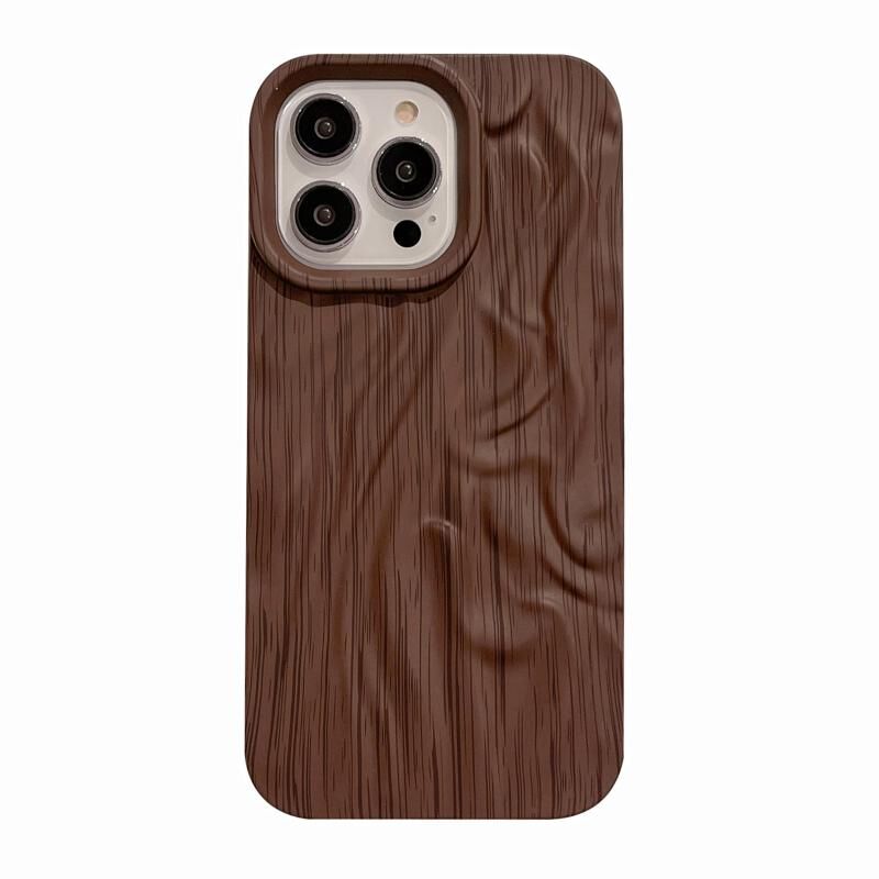 For iPhone 14 Plus Pleated Wood Grain TPU Phone Case(Dark Brown)