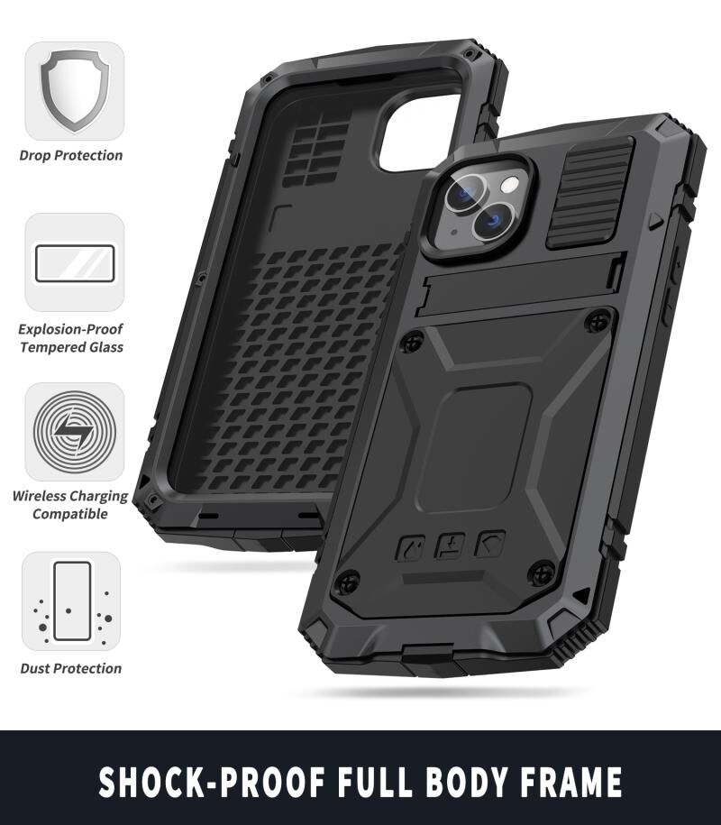 Θήκη αντικραδασμική αδιάβροχη ανθεκτική στη σκόνη για iPhone 14 Plus R-JUST με βάση στήριξης (Ασημί) (R-JUST)