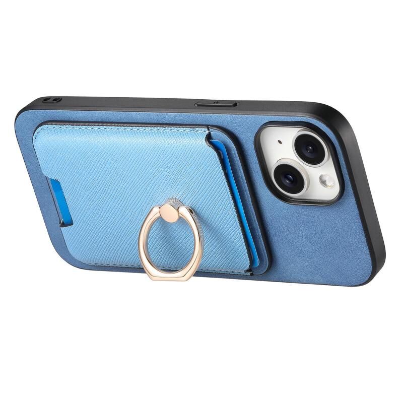 For iPhone 14 Plus Retro Cross Leather Card Bag MagSafe Phone Case(Blue)
