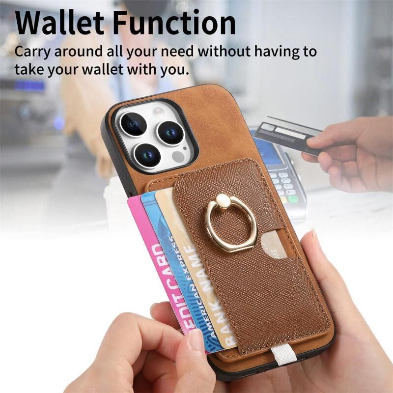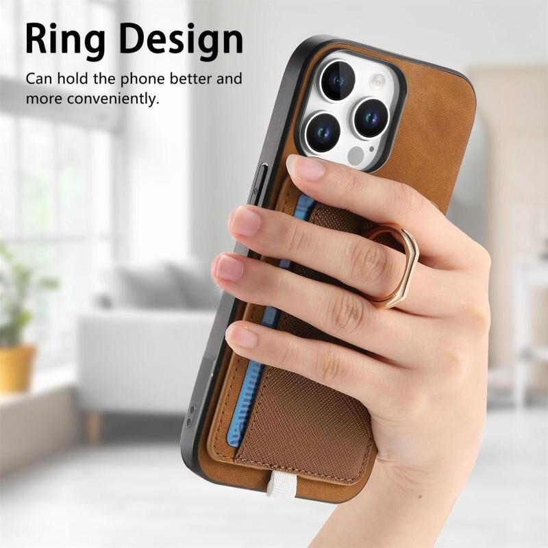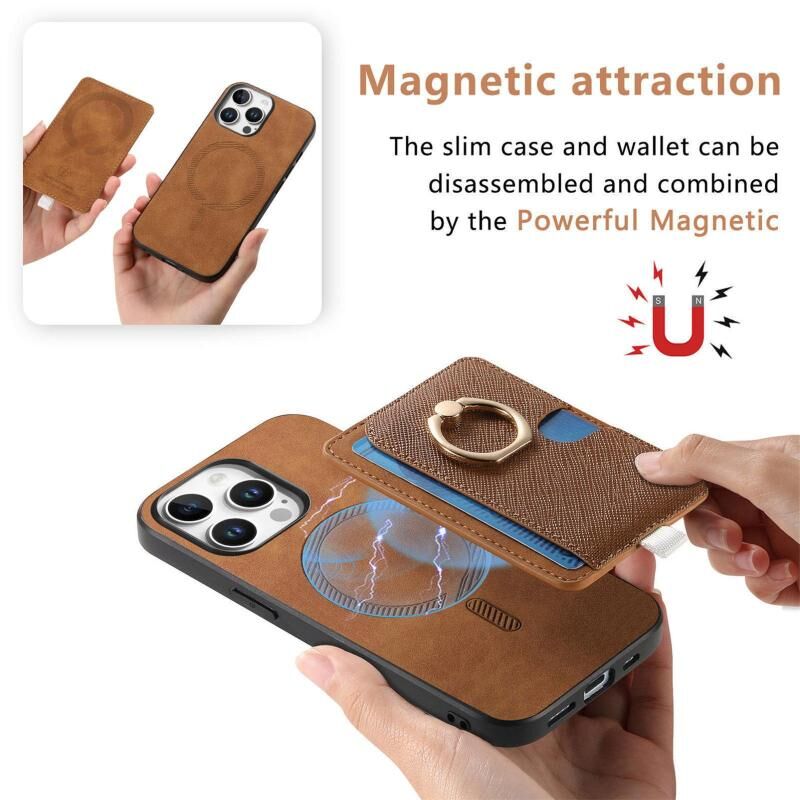 Θήκη τηλεφώνου MagSafe για iPhone 14 Plus, Ρετρό Δερμάτινη με Ενσωματωμένη Κάρτα και Δαχτυλίδι (Μωβ)