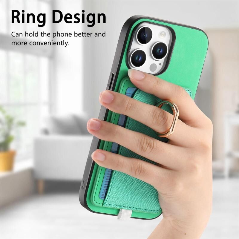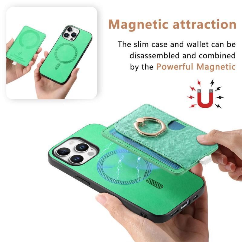 Θήκη τηλεφώνου MagSafe για iPhone 14 Plus, Ρετρό Δερμάτινη με Ενσωματωμένη Κάρτα και Δαχτυλίδι (Μωβ)