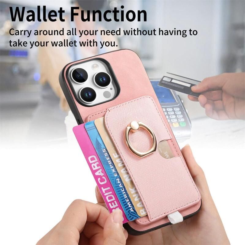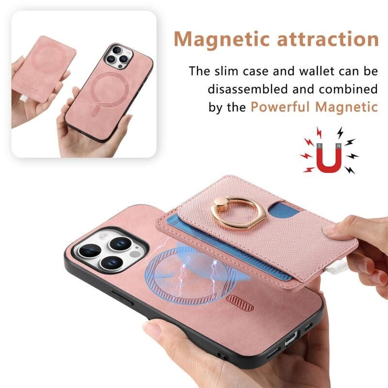 Θήκη τηλεφώνου MagSafe για iPhone 14 Plus, Ρετρό Δερμάτινη με Ενσωματωμένη Κάρτα και Δαχτυλίδι (Μωβ)