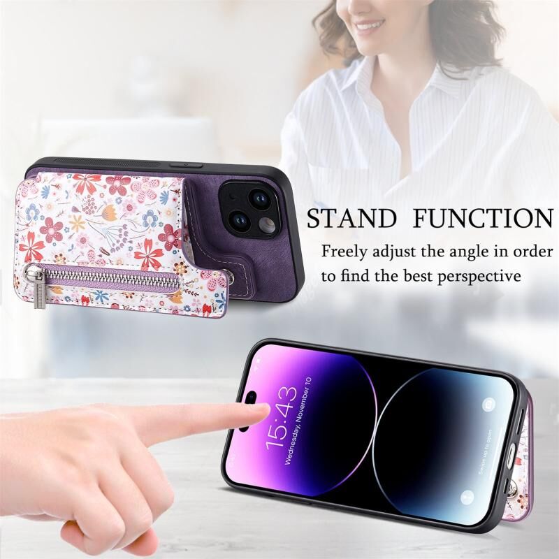 Θήκη κινητού τηλεφώνου για iPhone 14 Plus με σχέδιο vintage, φερμουάρ και θήκη πορτοφολιού (ροζ)