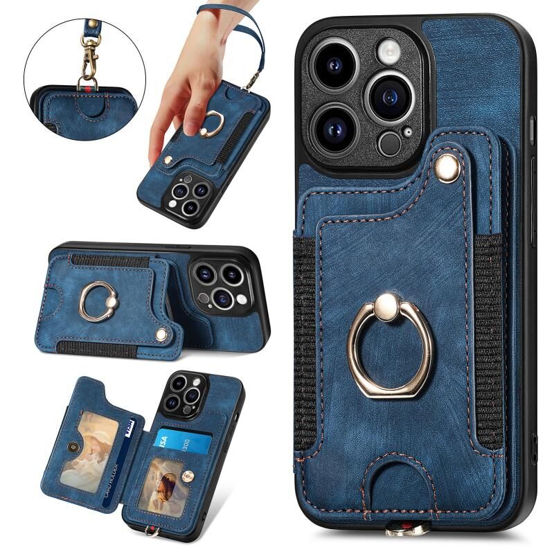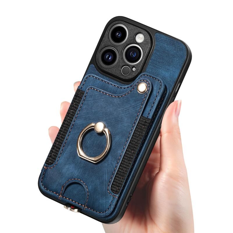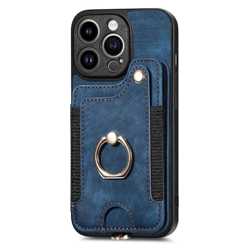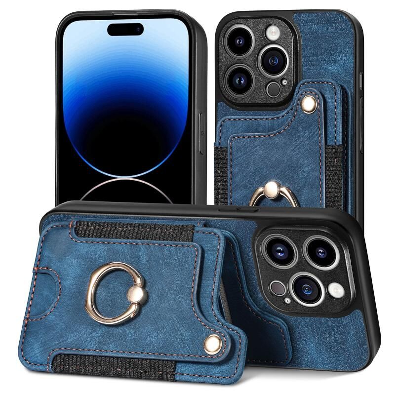 Θήκη τηλεφώνου για iPhone 14 Plus με ρετρό υφή, δακτύλιο και πολλαπλές θήκες καρτών (Ροζ)