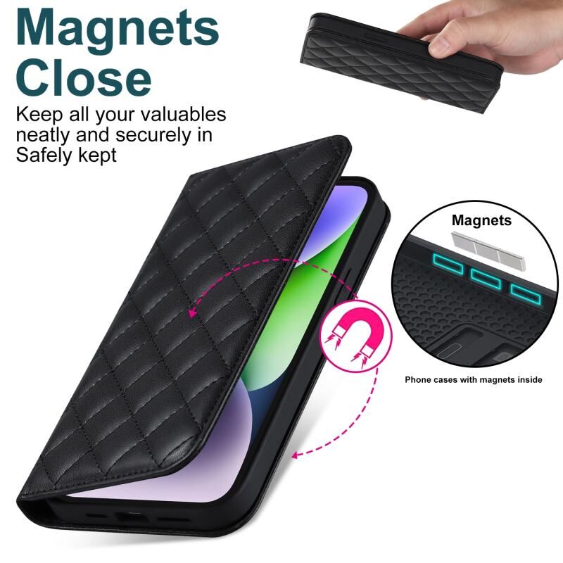 Θήκη τηλεφώνου από δέρμα με αντι-κλοπής RFID, MagSafe και ρόμβους για iPhone 14 Plus (Λευκό)