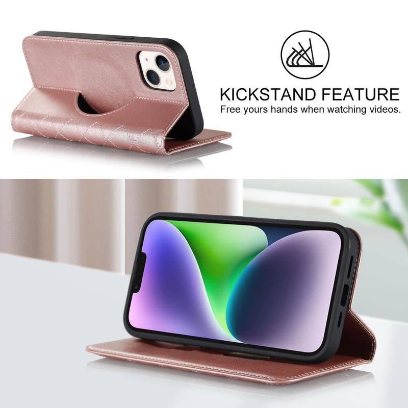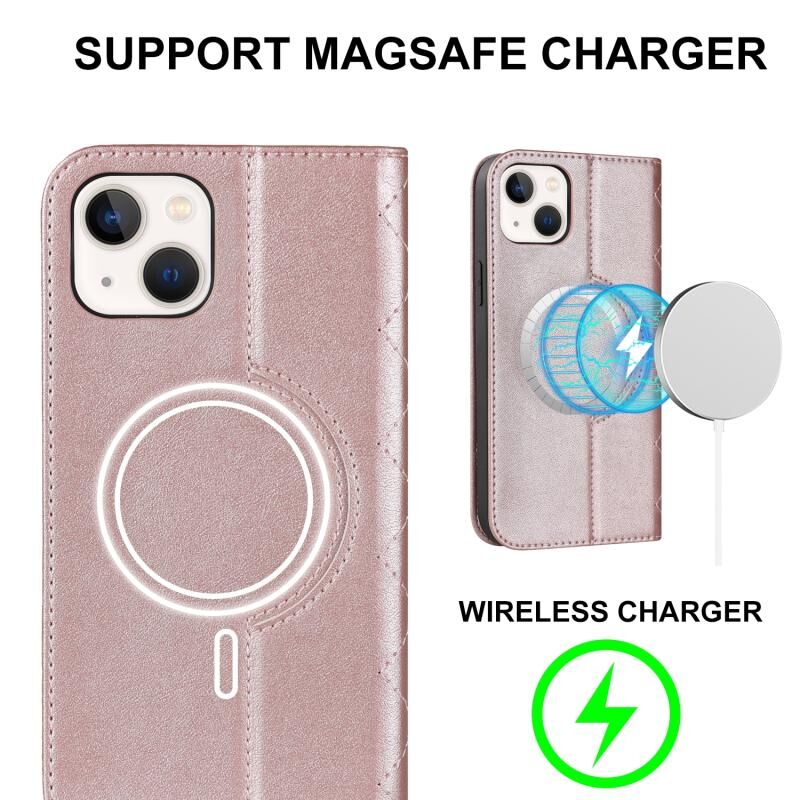 Θήκη τηλεφώνου από δέρμα με αντι-κλοπής RFID, MagSafe και ρόμβους για iPhone 14 Plus (Λευκό)