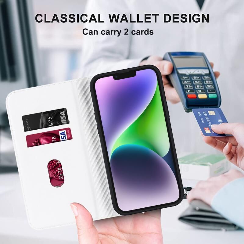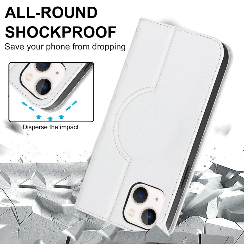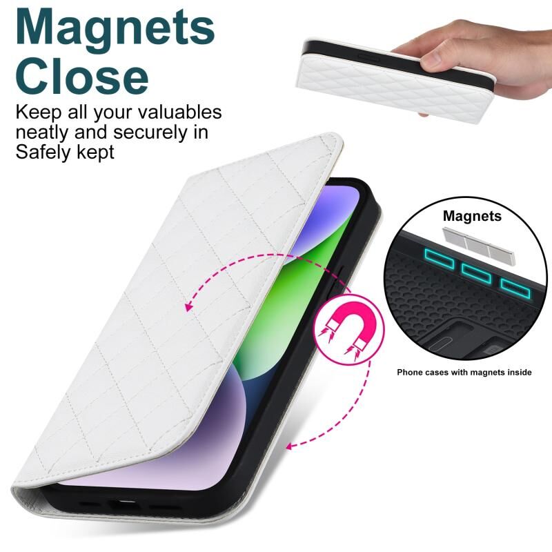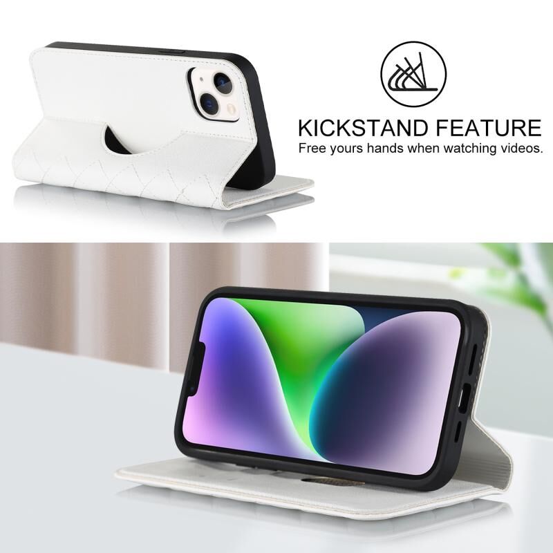 Θήκη τηλεφώνου από δέρμα με αντι-κλοπής RFID, MagSafe και ρόμβους για iPhone 14 Plus (Λευκό)