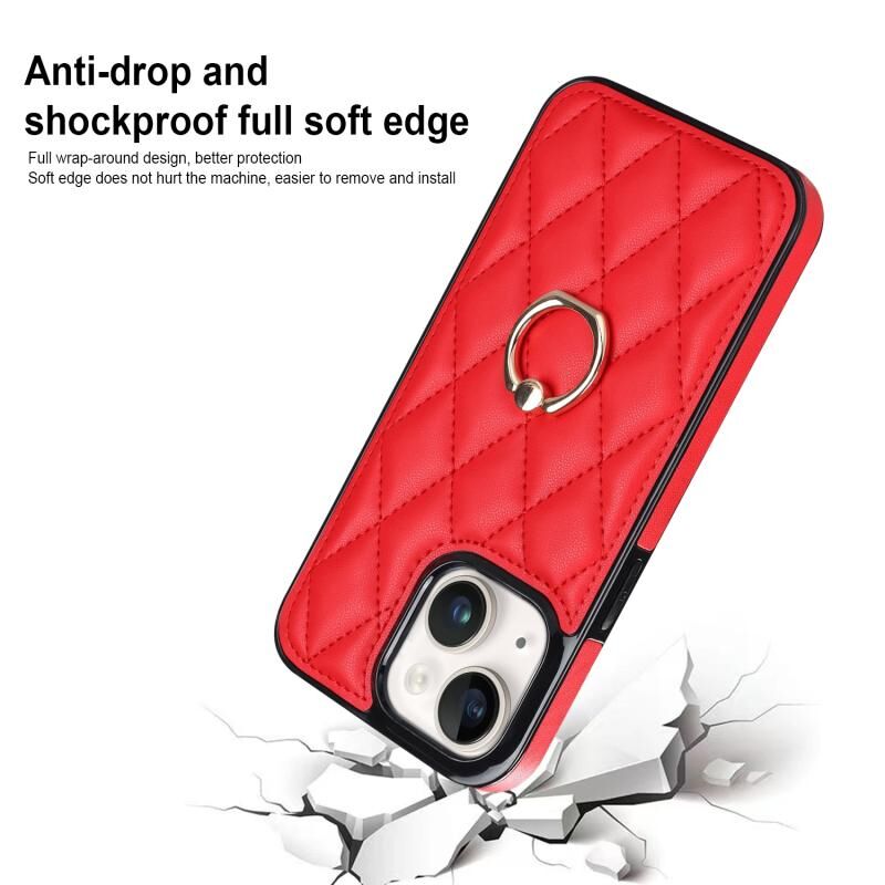 Θήκη τηλεφώνου για iPhone 14 Plus από δερματίνη PU με ρόμβους και δακτύλιο στήριξης (Λευκό)