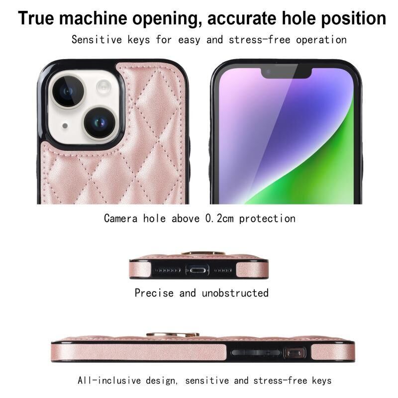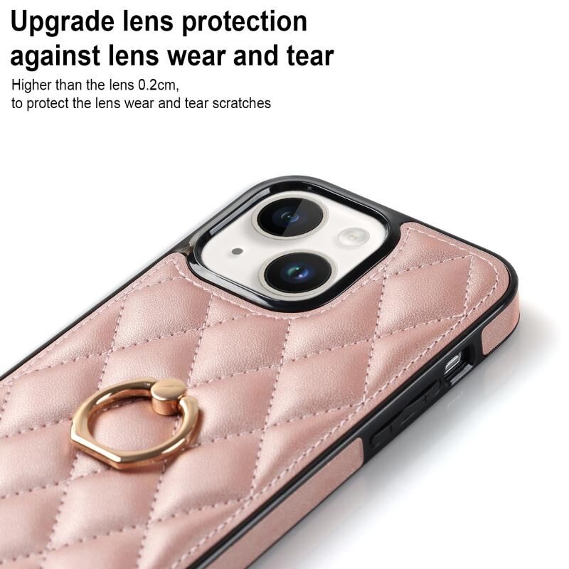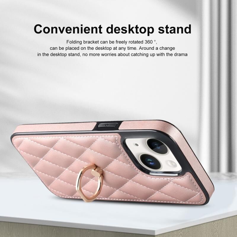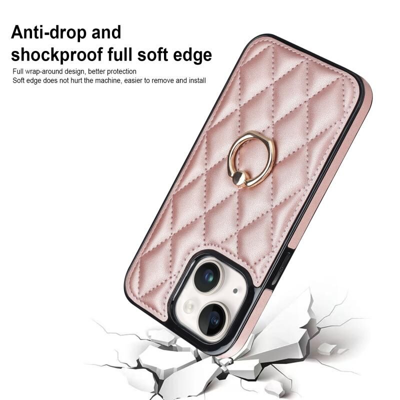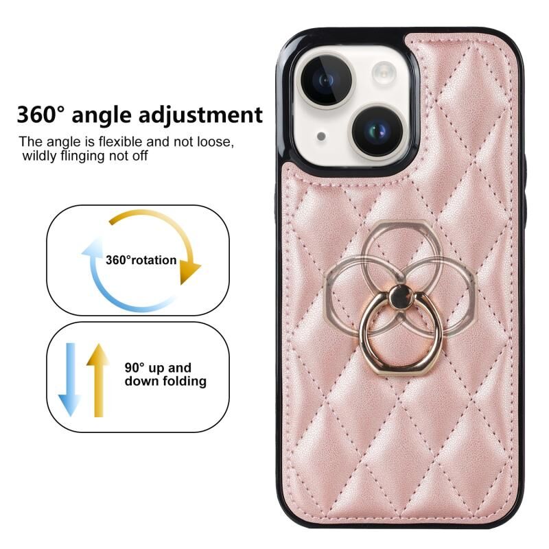 Θήκη τηλεφώνου για iPhone 14 Plus από δερματίνη PU με ρόμβους και δακτύλιο στήριξης (Λευκό)