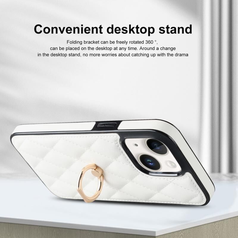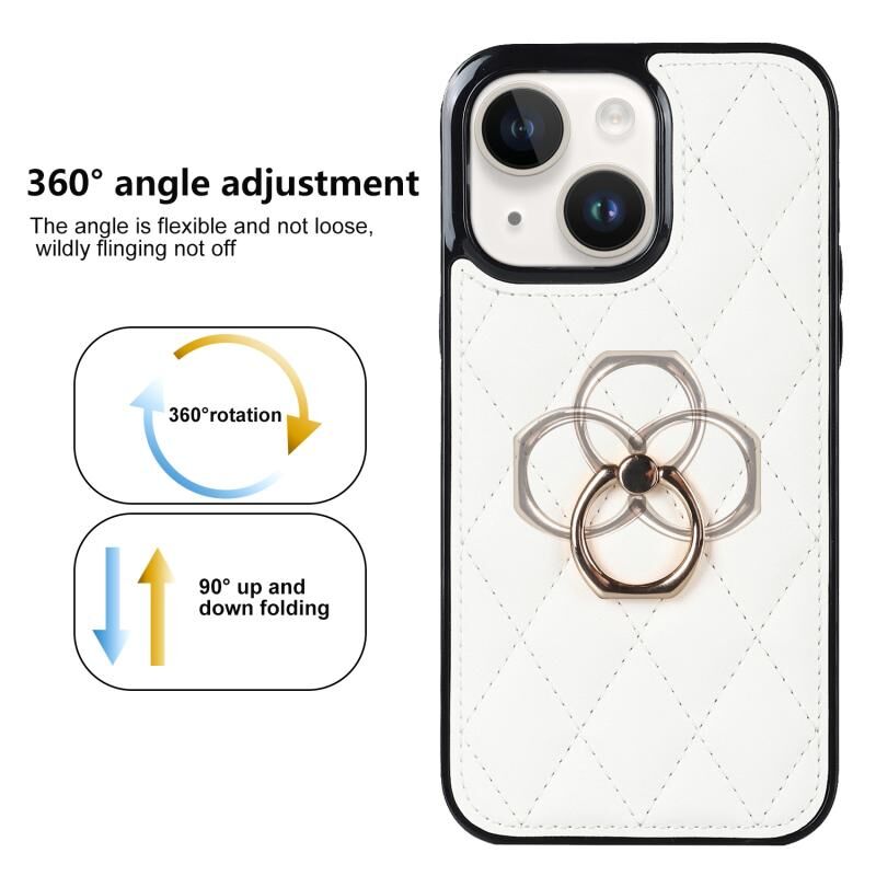 Θήκη τηλεφώνου για iPhone 14 Plus από δερματίνη PU με ρόμβους και δακτύλιο στήριξης (Λευκό)