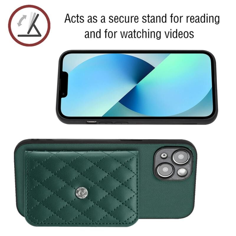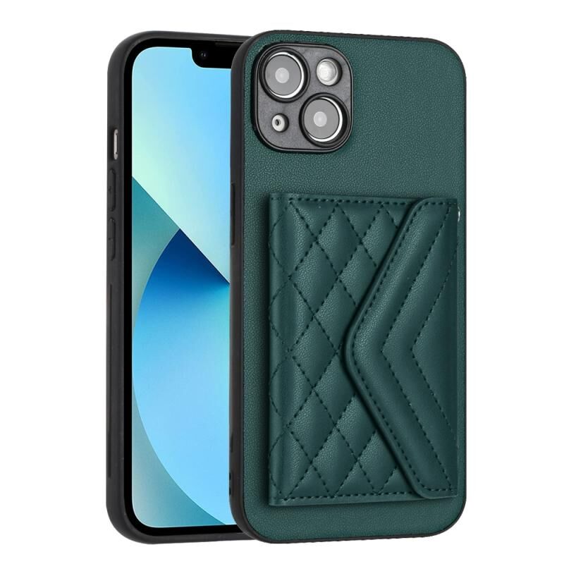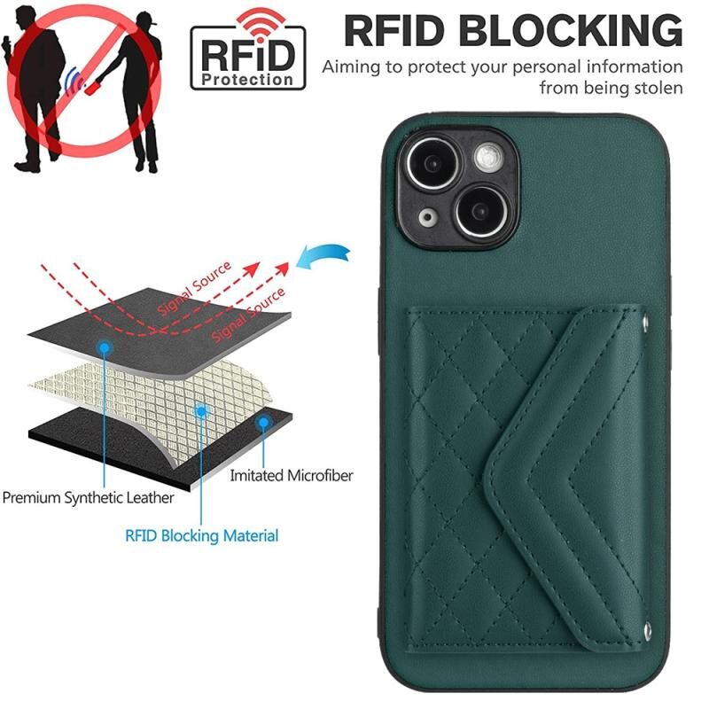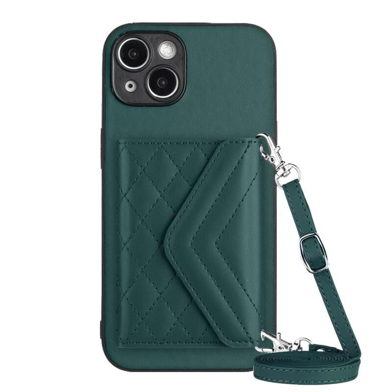 Θήκη κινητού τηλεφώνου RFID με υφή ρόμβου και μακρύ κορδόνι για iPhone 14 Plus (Πράσινο)