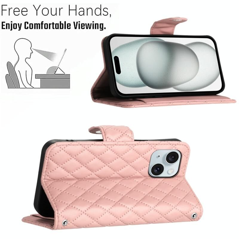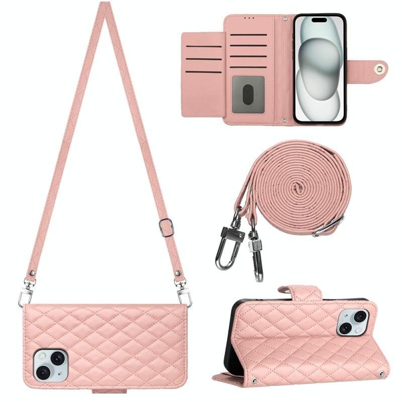 Θήκη τηλεφώνου από δέρμα με ανάγλυφη υφή ρόμβου για iPhone 14 Plus με μακρύ κορδόνι (Κόκκινο)