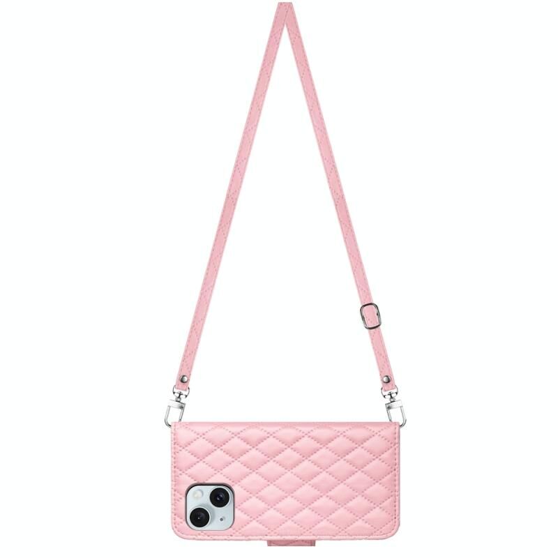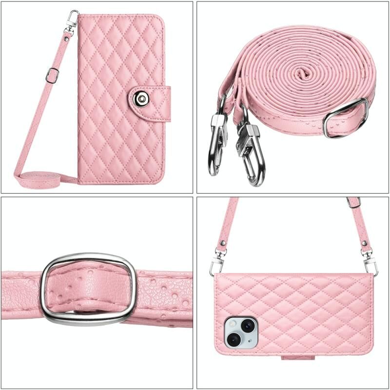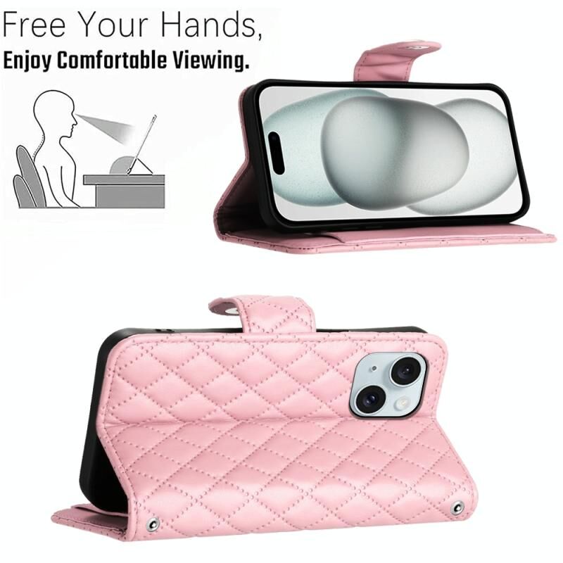 Θήκη τηλεφώνου από δέρμα με ανάγλυφη υφή ρόμβου για iPhone 14 Plus με μακρύ κορδόνι (Κόκκινο)
