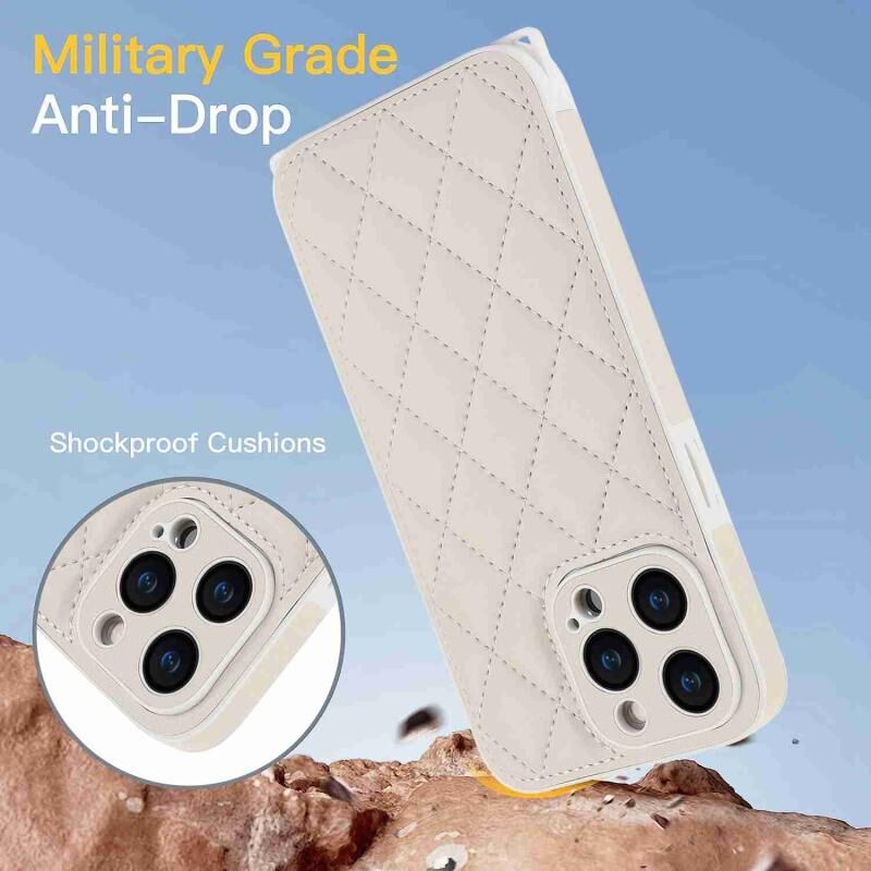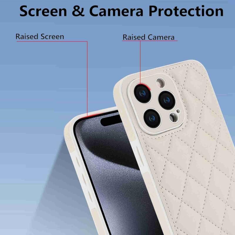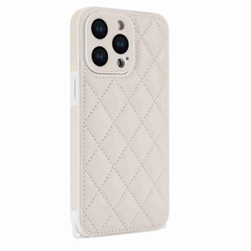 Θήκη τηλεφώνου με υφή ρόμβου για iPhone 14 Plus με διπλό κορδόνι (Λευκό)