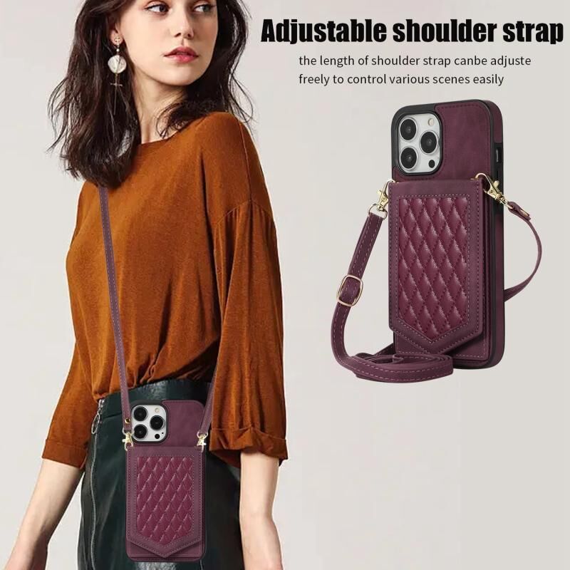 Θήκη κινητού τηλεφώνου με κορδόνι & καθρέφτη για iPhone 14 Plus με υφή ρόμβου (Μέντας πράσινο)