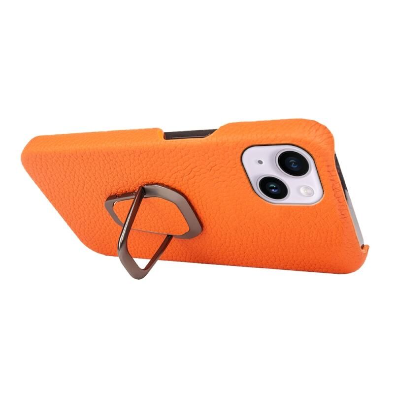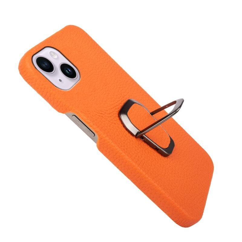 Θήκη τηλεφώνου από γνήσιο δέρμα με υφή λitchi για iPhone 14 Plus με δακτύλιο στήριξης (Μαύρο)