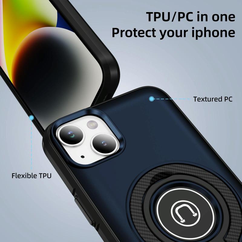 For iPhone 14 Plus Ring Holder Magnetic Phone Case(Blue)