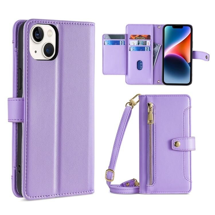 Θήκη τηλεφώνου από δέρμα με υφή προβάτου, διαγώνια, με φερμουάρ και θήκη πορτοφολιού για iPhone 14 Plus (Μαύρο)