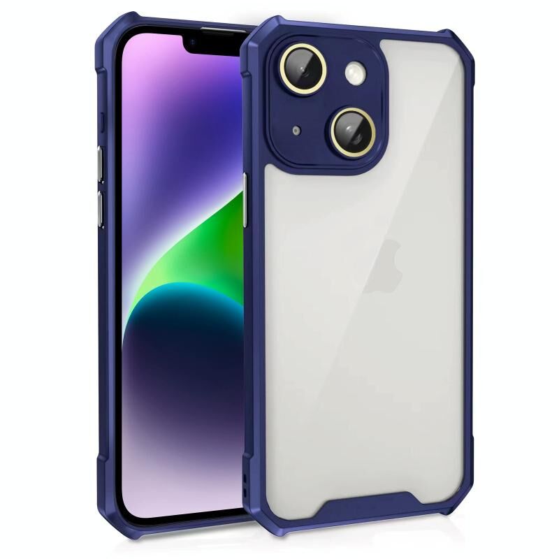 Θήκη κινητού τηλεφώνου για iPhone 14 Plus, ανθεκτική στις κρούσεις, από ακρυλικό υλικό με προστατευτική μεμβράνη φακού (Μπλε)