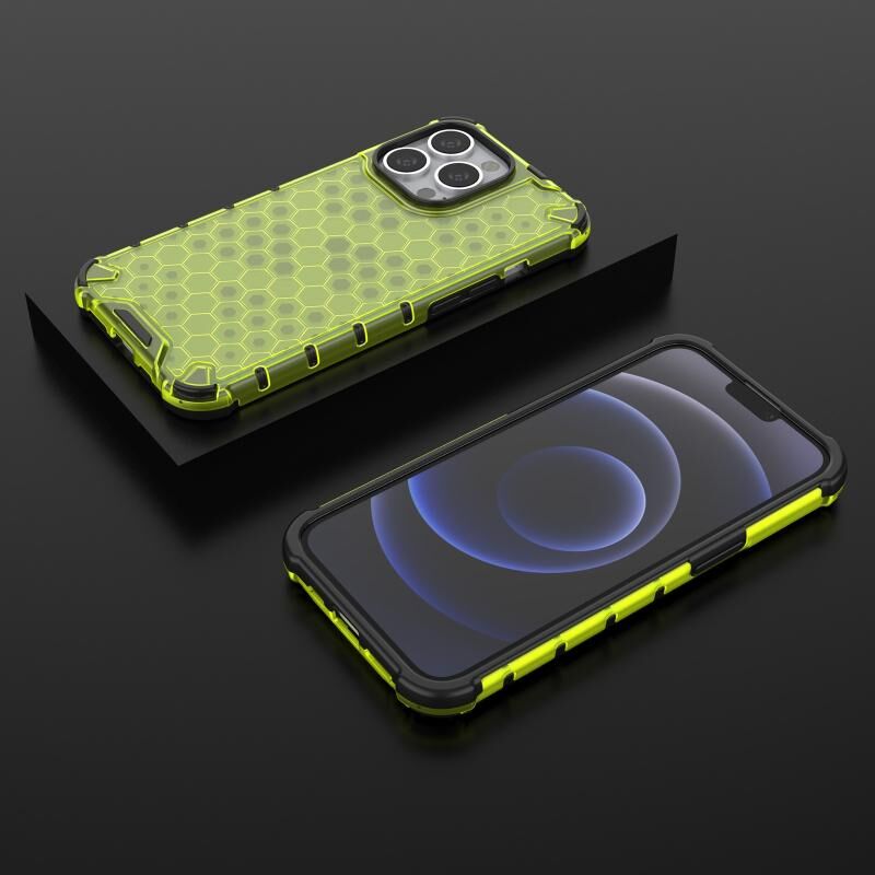 Θήκη τηλεφώνου για iPhone 14 Plus ανθεκτική στις κρούσεις, από PC + TPU με κυψελοειδές σχέδιο (Μπλε)