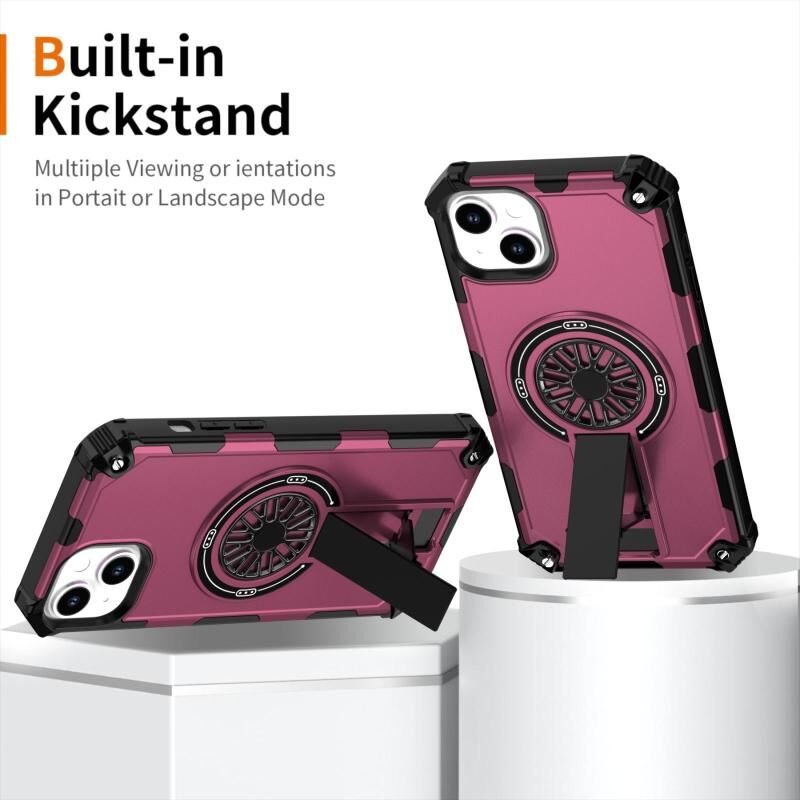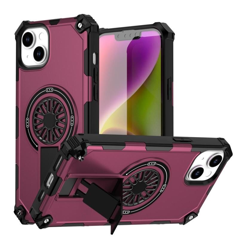 For iPhone 14 Plus Shockproof Kickstand Metallic Shaft MagSafe Phone Case(Purple)