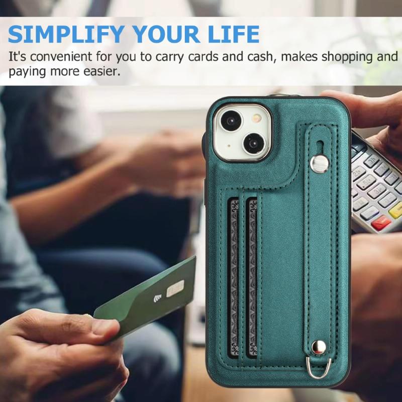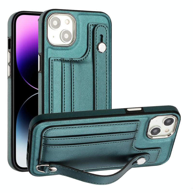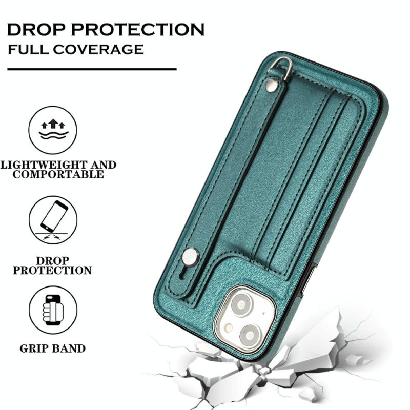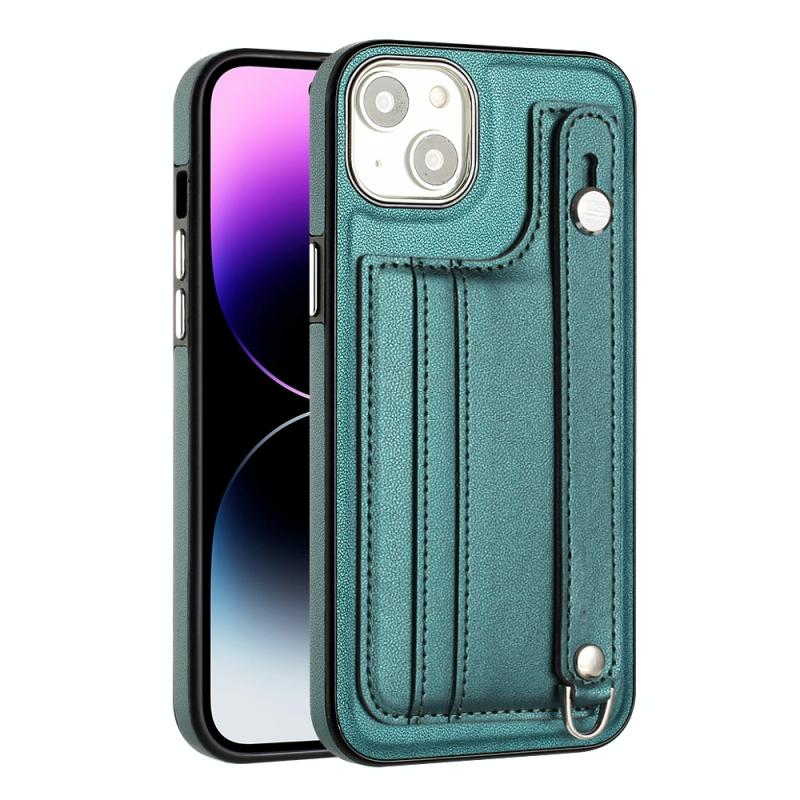 Θήκη δερμάτινη ανθεκτική για iPhone 14 Plus με λουράκι καρπού (Πράσινο)