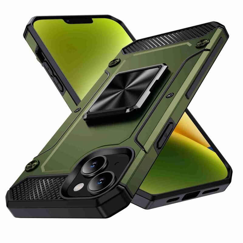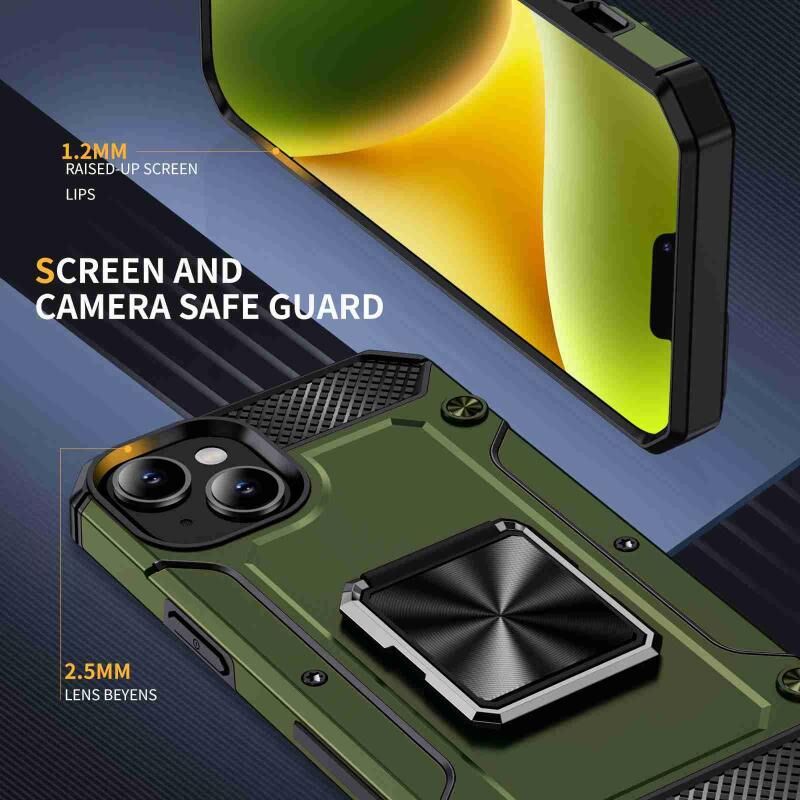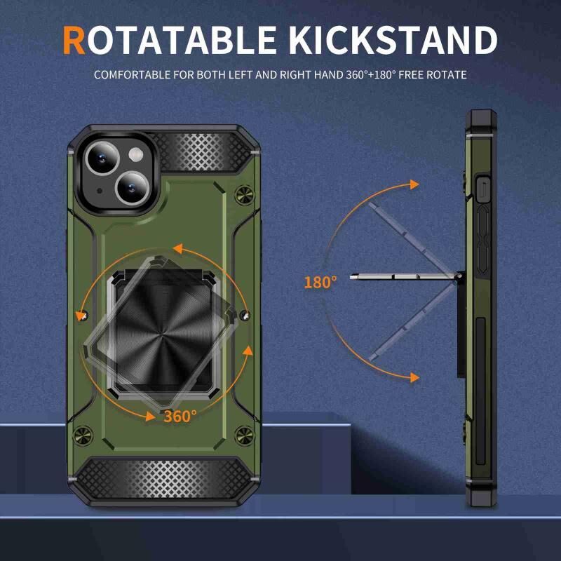 Θήκη τηλεφώνου για iPhone 14 Plus ανθεκτική στις κρούσεις με μεταλλική βάση στήριξης (Χακί Πράσινο)