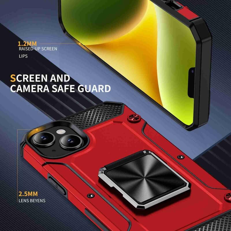 Θήκη τηλεφώνου για iPhone 14 Plus ανθεκτική στις κρούσεις με μεταλλική βάση στήριξης (Χακί Πράσινο)