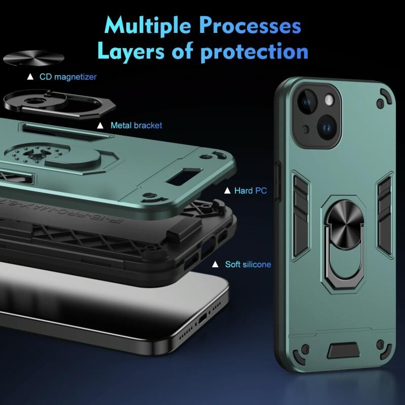 Θήκη τηλεφώνου για iPhone 14 Plus με μεταλλική βάση δακτυλιδιού ανθεκτική στις κρούσεις (Πράσινο)