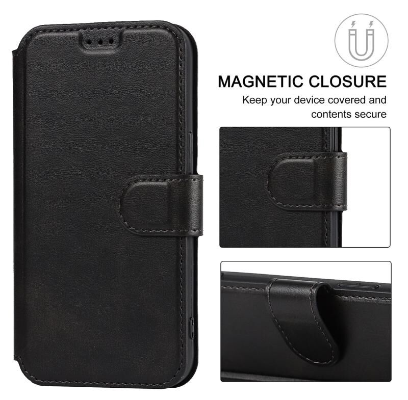 Θήκη κινητού τηλεφώνου για iPhone 14 Plus, ανθεκτική στις κρούσεις, από δέρμα PU + TPU (Μαύρο)