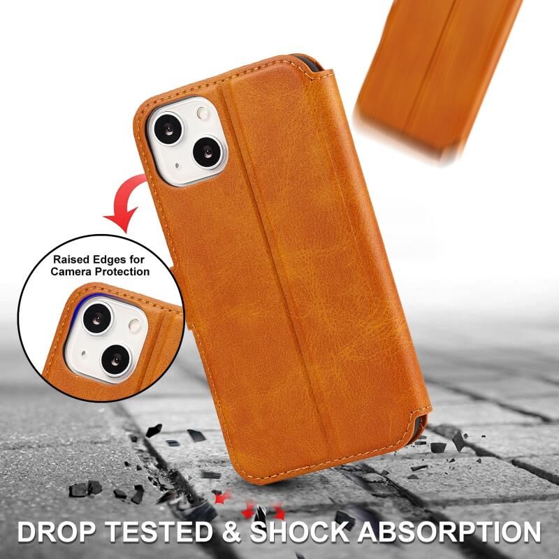 Θήκη κινητού τηλεφώνου για iPhone 14 Plus, ανθεκτική στις κρούσεις, από δέρμα PU + TPU (Μαύρο)
