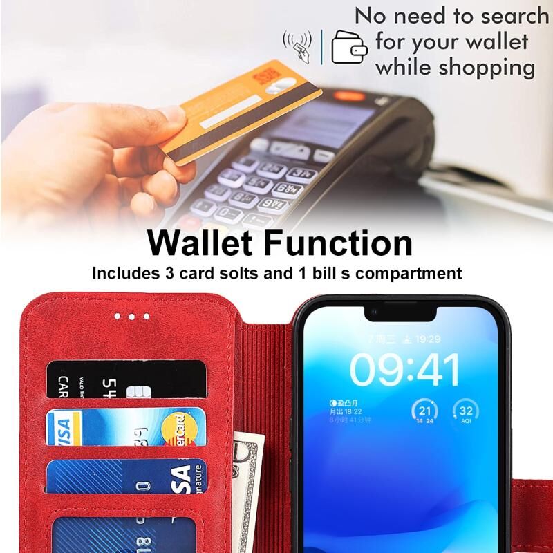 Θήκη κινητού τηλεφώνου για iPhone 14 Plus, ανθεκτική στις κρούσεις, από δέρμα PU + TPU (Μαύρο)