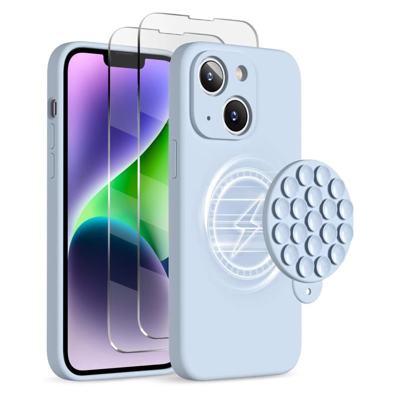 Θήκη τηλεφώνου MagSafe για iPhone 14 Plus από σιλικόνη με βεντούζα και προστατευτική μεμβράνη οθόνης (Μέντας Πράσινο)