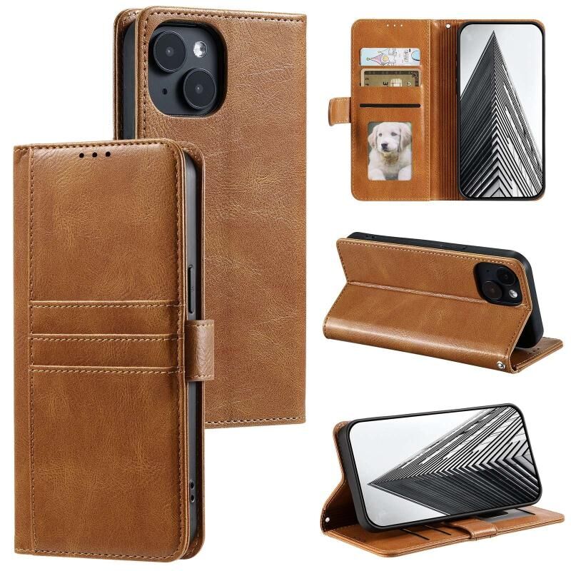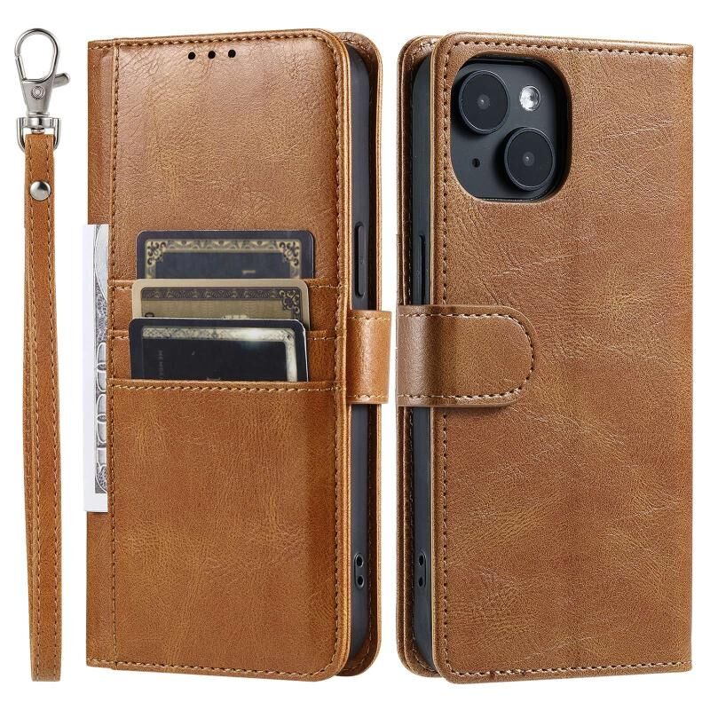 Θήκη τηλεφώνου από δέρμα για iPhone 14 Plus, απλή θήκη πορτοφολιού 6 καρτών (Καφέ)