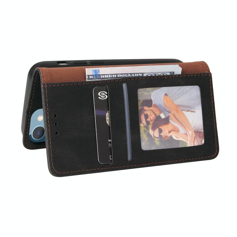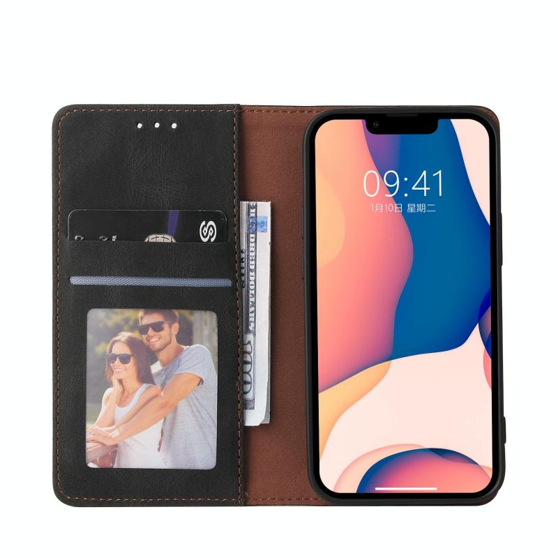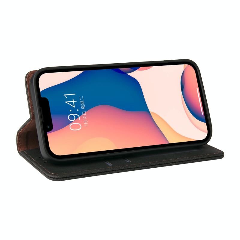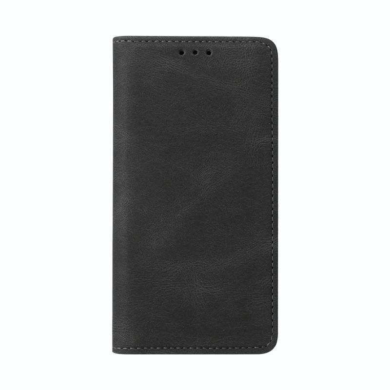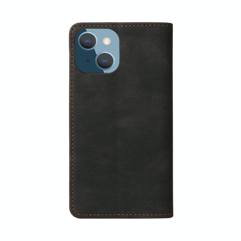 Για iPhone 14 Plus Δερμάτινη Θήκη Flip με Κλείσιμο Αναρρόφησης (Μαύρο)
